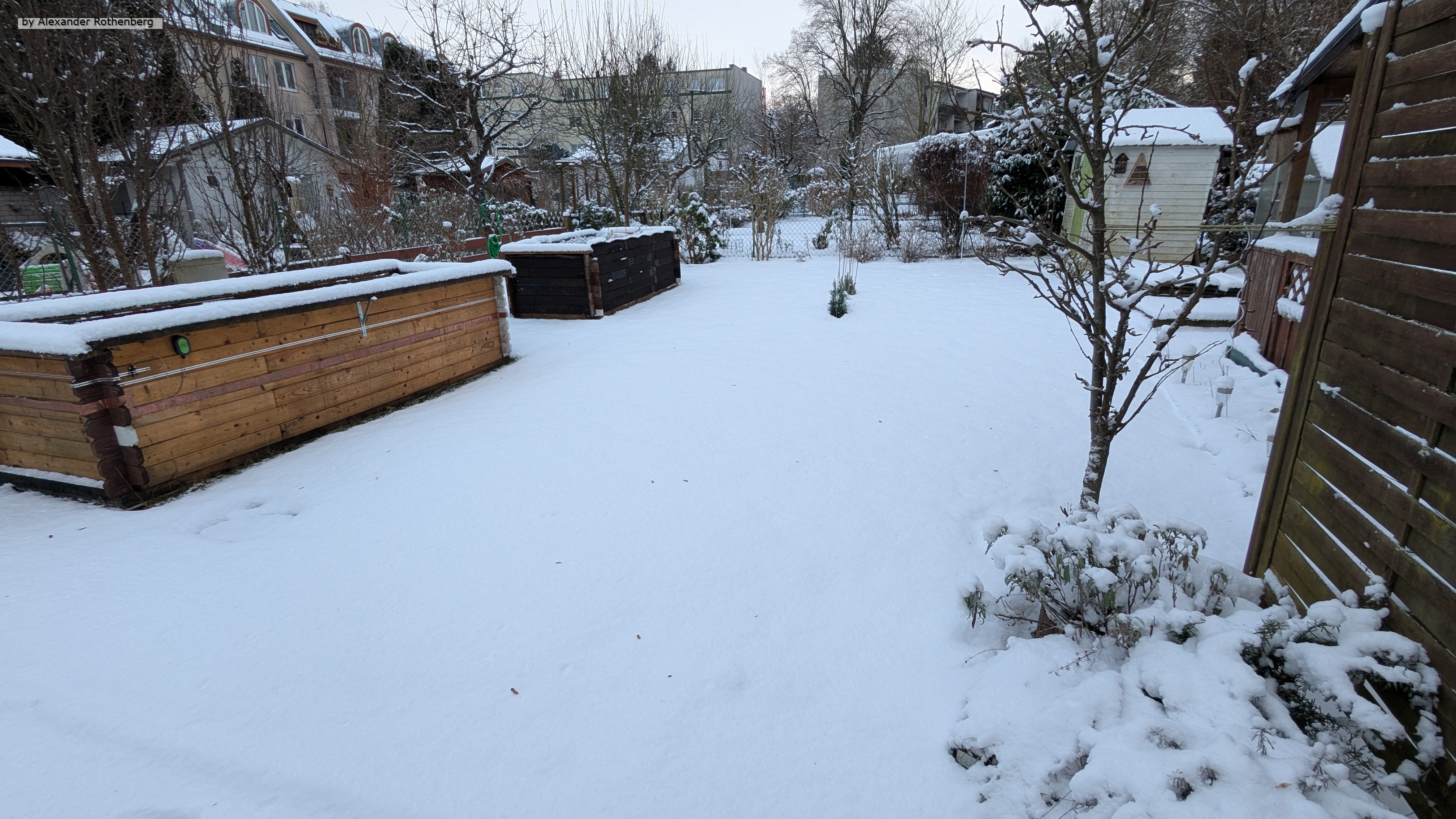 Dieses Mal wenig Text und nur ein paar Bilder. Während der Dezember 2025 zwar durchaus kalt aber kaum winterlichen Schnee gebracht hatte, wurde dies im Januar 2026 um so mehr aufgeholt. Und da mein Garten am Teltowkanal ganz in der Nähe vom Heizkraftwerk Lichterfelde liegt, und durch den Anschlag auf die Kabelbrücke ebenfalls vom Stromausfall betroffen war, wollte ich mal nach dem Rechten sehen. Ich bin heilfroh, dass nur der Garten und keiner aus der Familie davon betroffen war...